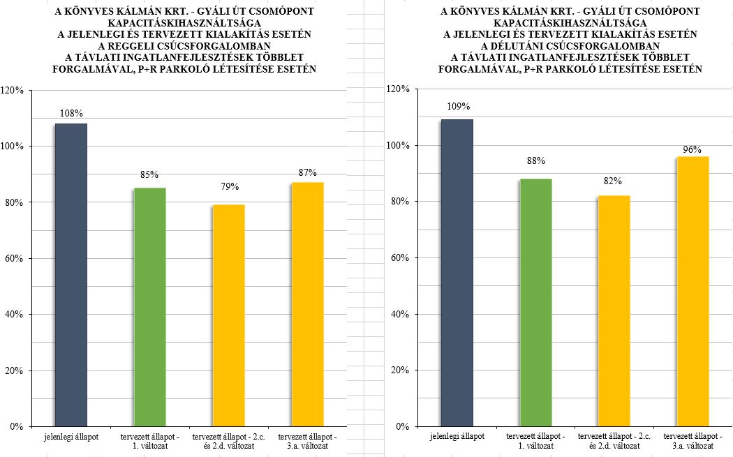 A részletes vizsgálatok eredménye alapján a Tervező (Pro Urbe Kft.) és a Megbízó (BKK) egymással összhangban az 1. és 2. változatok ütemezett megvalósítása mellett foglalt állást tekintettel arra, hogy a legnagyobb forgalmú csomóponti kapcsolat kiemelésével még a jelzőlámpás körforgalmi megoldásnál is kedvezőbb kapacitáskihasználtság érhető el, jóval kedvezőbb terület igénybevétel mellett.