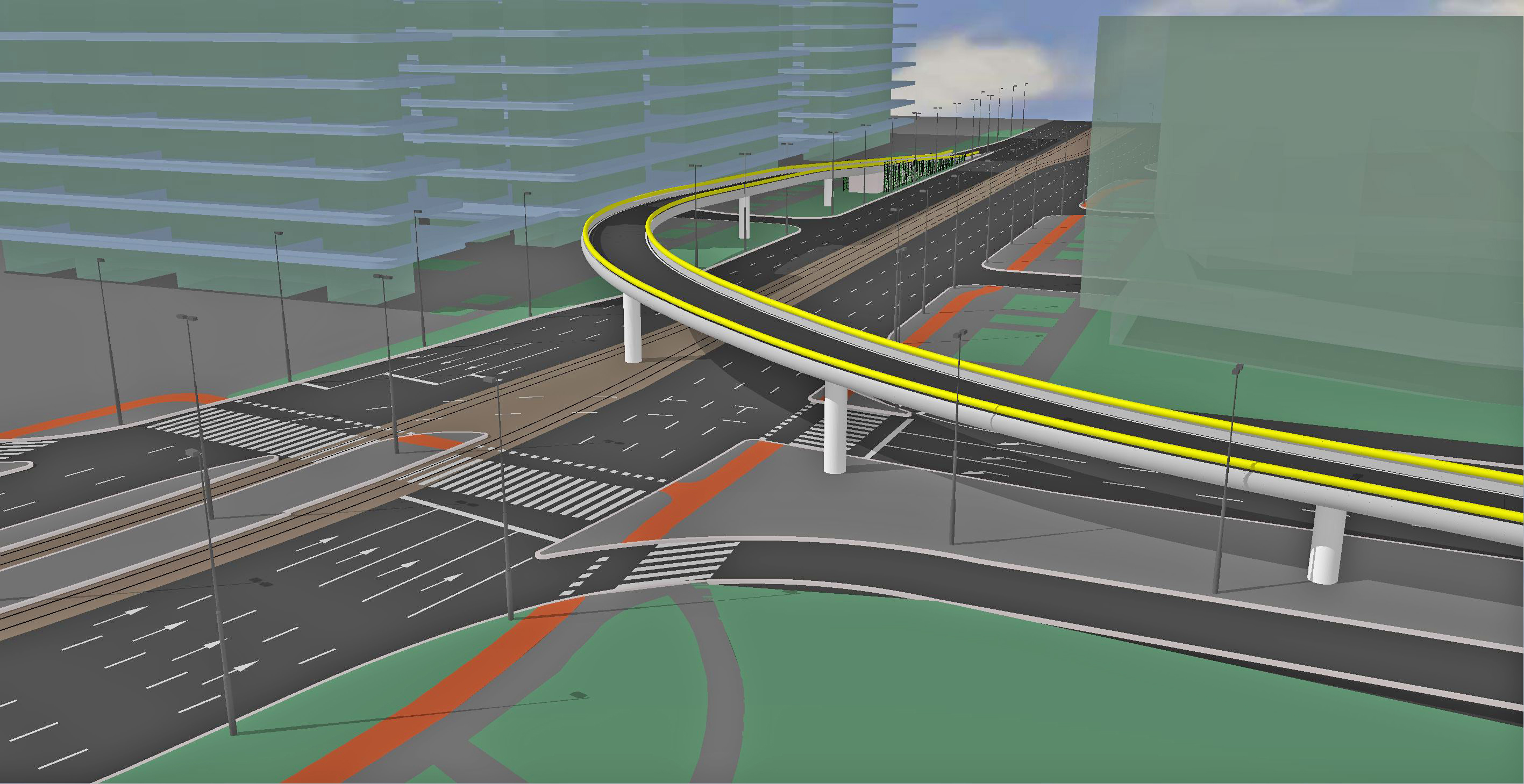 - Az 1. változatban a jelenlegi (2014) szintbeni jelzőlámpás csomóponti rendszer racionalizálásával foglalkoztunk.