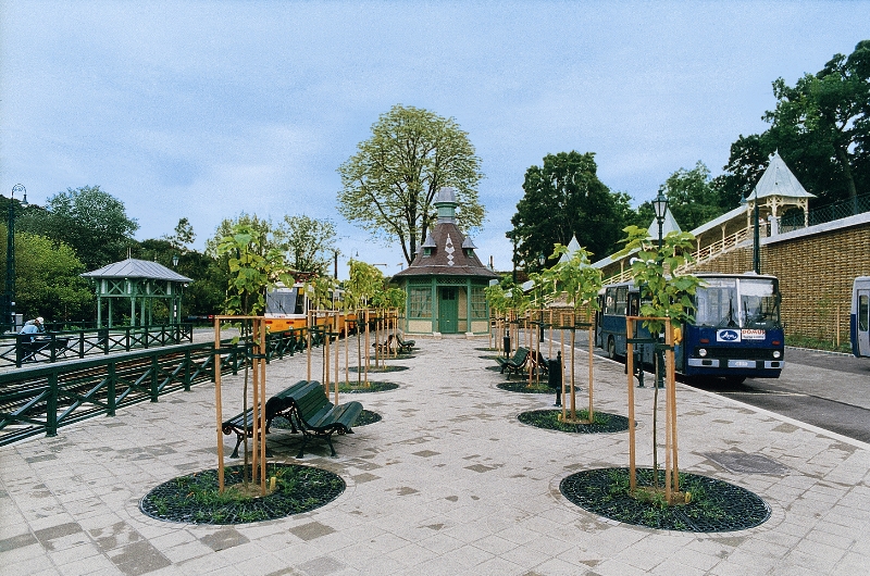 A végállomás épületét szétbontás előtt elemenként beszámozták, hogy felújítva, az eredeti rendnek megfelelően, szerkezetében is hitelesen lehessen felállítani. A nagyszámú pótlandó, károsodott elemet a kibontott minták alapján gyártották újra. Az új utcabútorok, kandeláberek, a Hűvösvölgyi úti jelzőlámpa szintén a századforduló stílusjegyeit hordozzák. A környezet megformálásához tartozott a térburkolatok igényes kialakítása is. A végállomáson új, automatikus forgalomirányítási rendszer épült, amely összehangolja a különböző járatok érkezését és indulását. A hűvösvölgyi villamos és autóbusz végállomás úgy válhatott Budapest egyik legkorszerűbb közlekedési - és egyben első intermodális - csomópontjává, hogy a régi épületek megújulva őrizhették meg eredeti szépségüket.